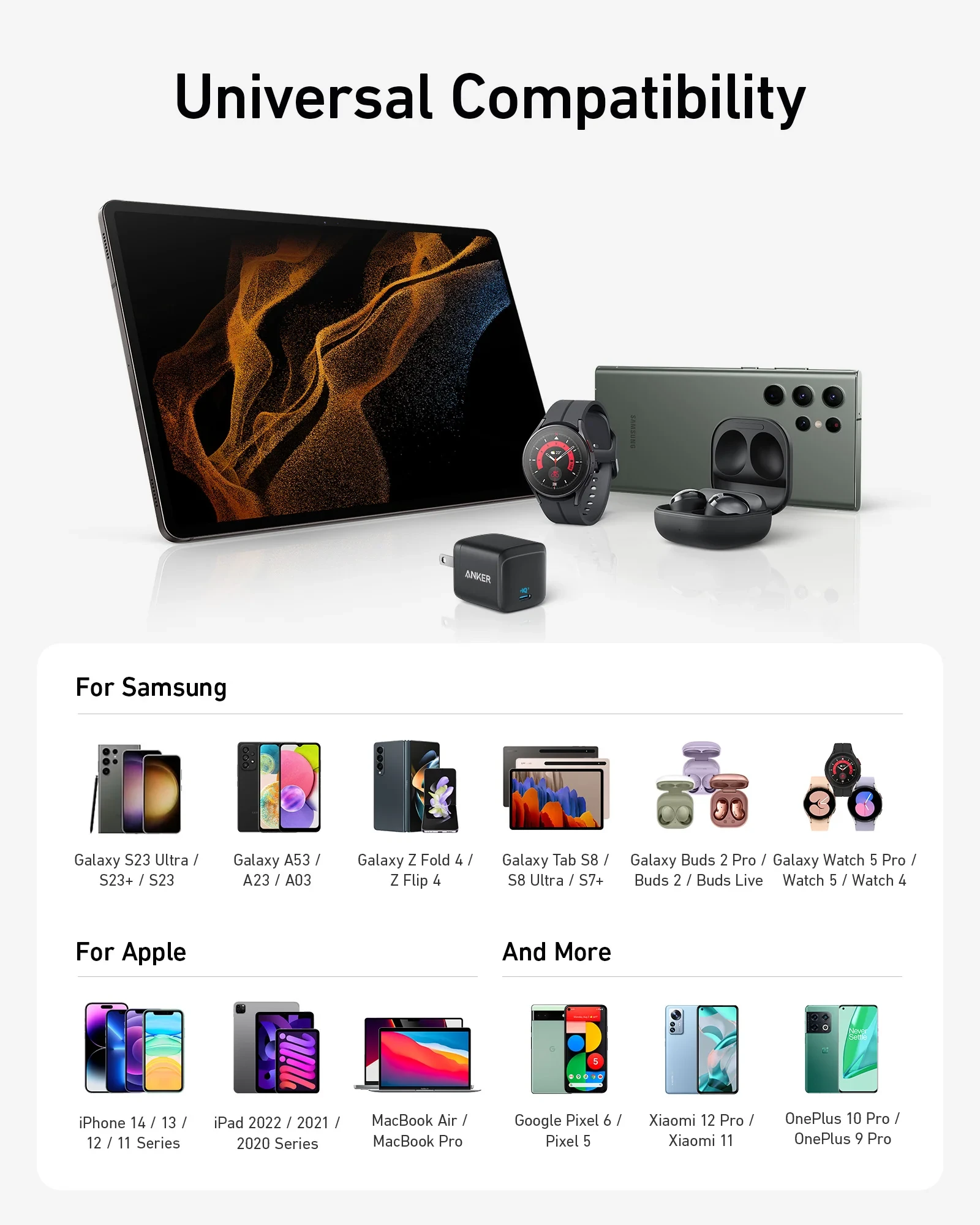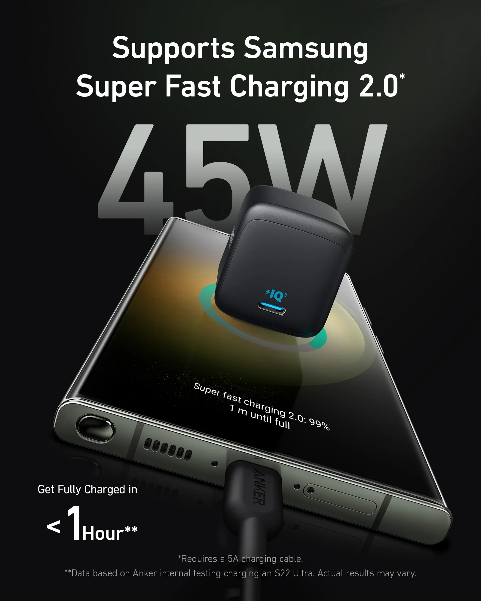45W USB C ultra-fast charger, 313 charger, Anker Ace foldable PPS fast charger supports ultra-fast charging 2.0, suitable for Samsung Galaxy Z Fold 6/S24 Ultra/S23 Ultra/S23+/S23/S22/S21/S20/Note 20/Note 10, Cable not included.