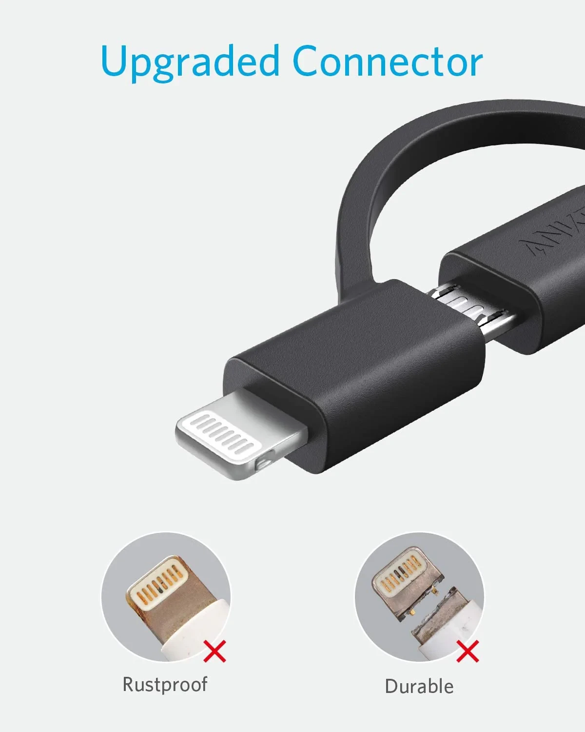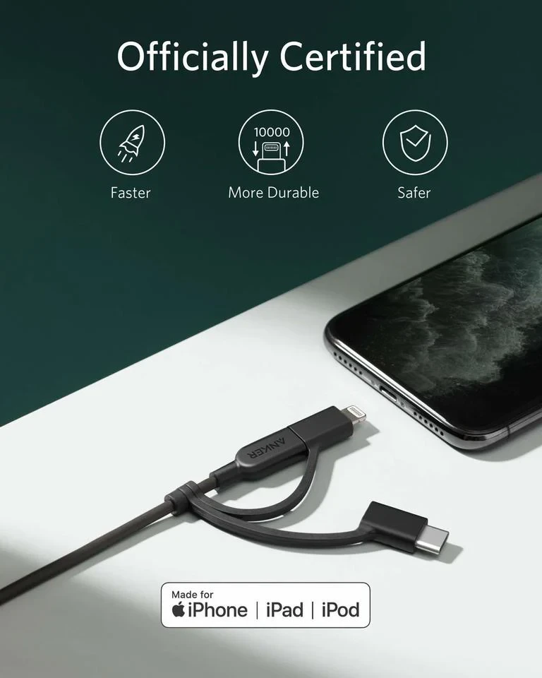 The durability you've come to expect from PowerLine II now with universal compatibility. With Micro USB, USB-C, and Lightning connectors built-in, it's the only cable you'll ever need.