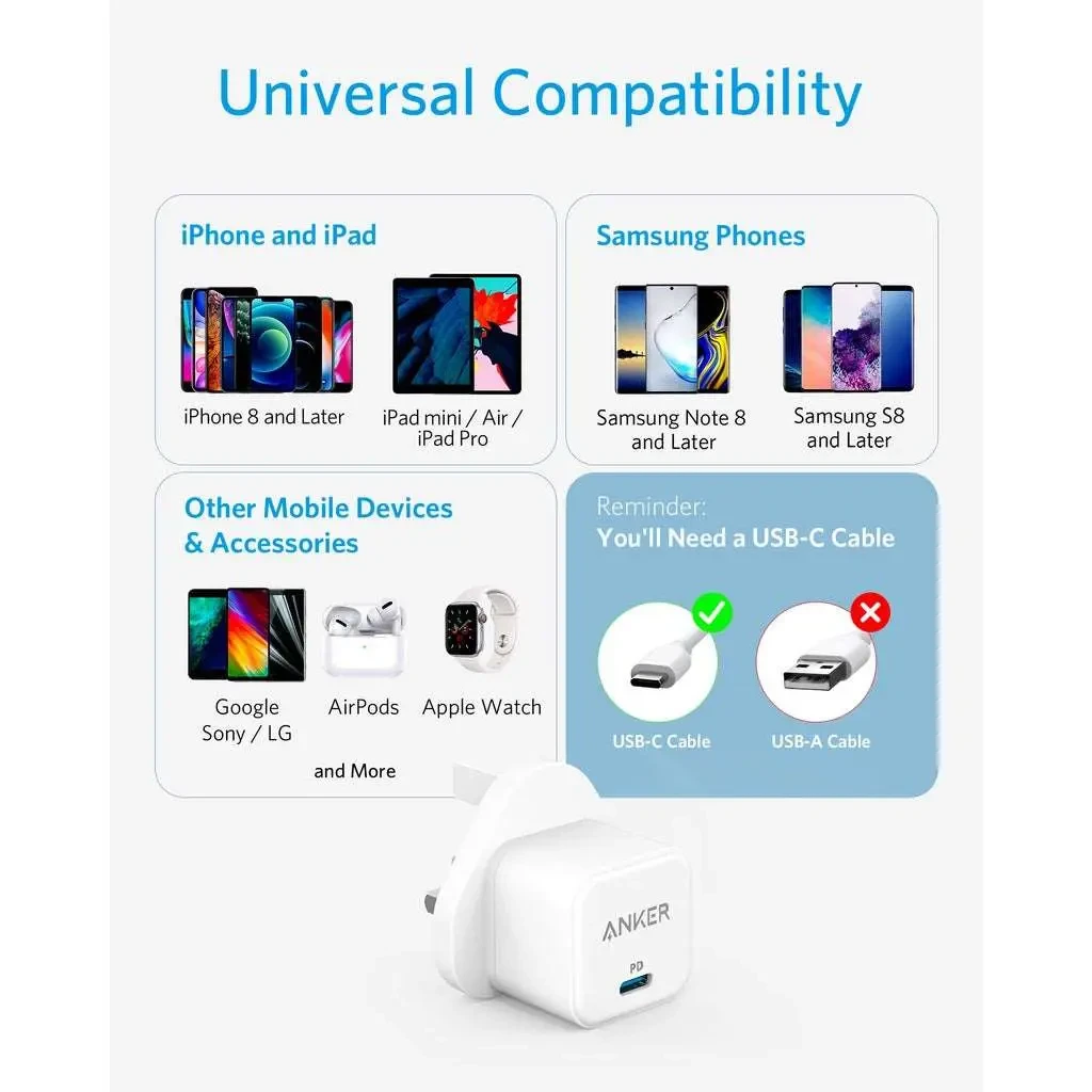 The Anker Powerport III 20W Cube (A2149) is a compact, fast-charging wall adapter with a single USB-C port, a foldable plug, and 20W Power Delivery (PD). It is designed to charge phones, tablets, and earbuds quickly and safely.