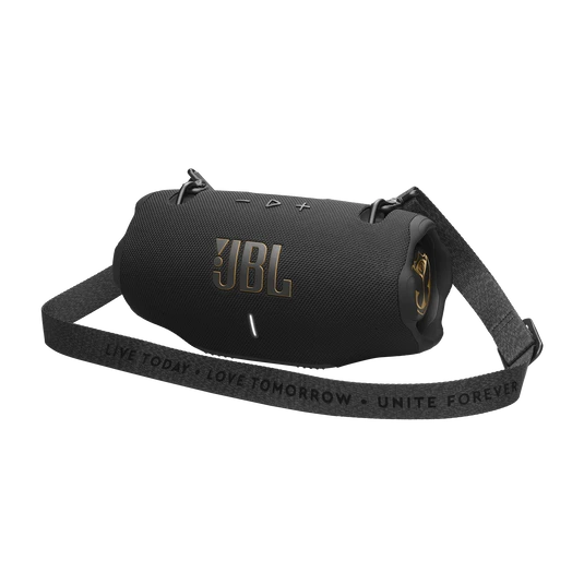 The JBL Xtreme 4 portable waterproof speaker delivers next-level massive JBL Pro Sound with amazing dynamics, thanks to two powerful woofers and two tweeters. Dual pumping JBL passive radiators give you deeper bass that moves you. It offers 24 hours of playtime, and the handy shoulder strap makes it easy to spend some of those outside, where the rugged bumpers and IP67 waterproof and dustproof rating mean even a dunk in the lake won't stop the fun.