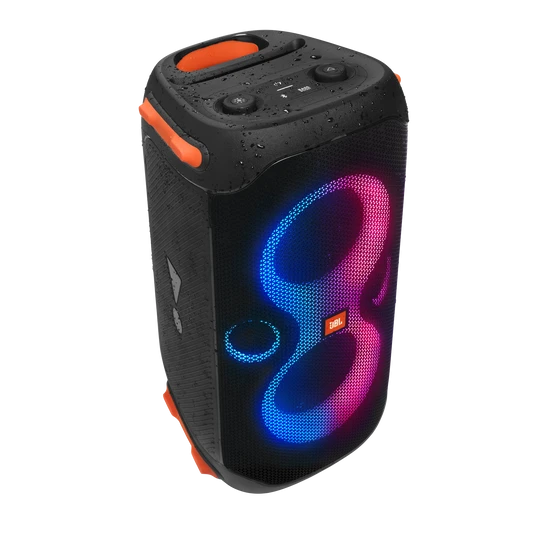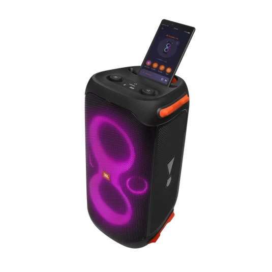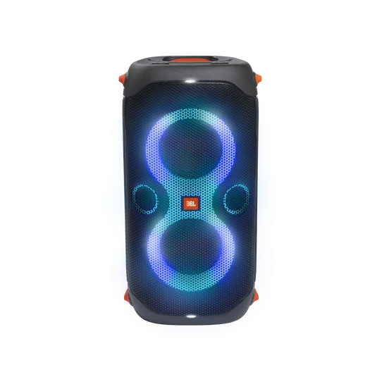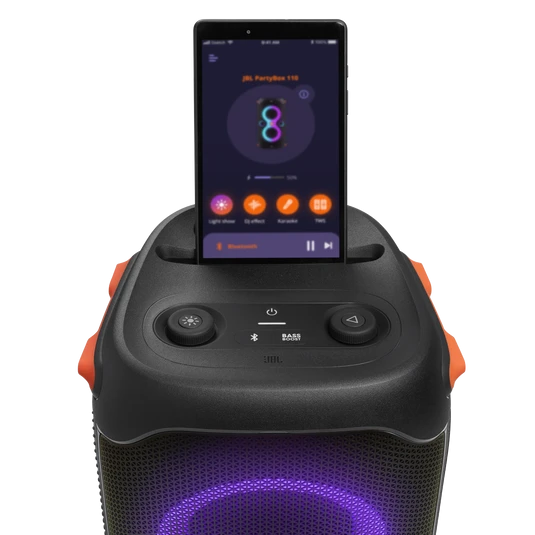 Bring a whole new dimension to any party with the unique dynamic LED lightrings, synced to the powerful sound and deep bass of the PartyBox 110. Take the PartyBox wherever you go with the splashproof design and plug in a guitar and mic for the ultimate immersive experience. With Bass Boost and loud, powerful JBL Original Pro Sound, your friends won't just hear the music, they'll feel it as 12 hours of playtime keeps the party rocking all day or night. Use the PartyBox app for total control as you stream your tunes wirelessly.
