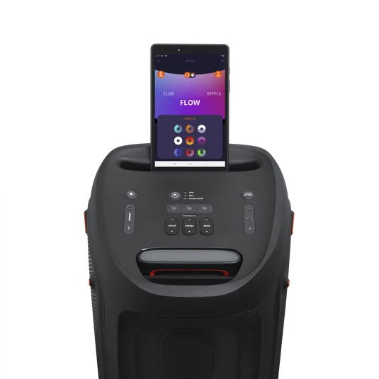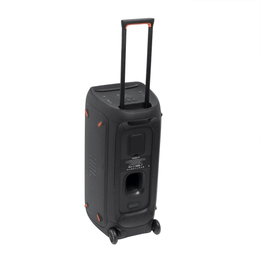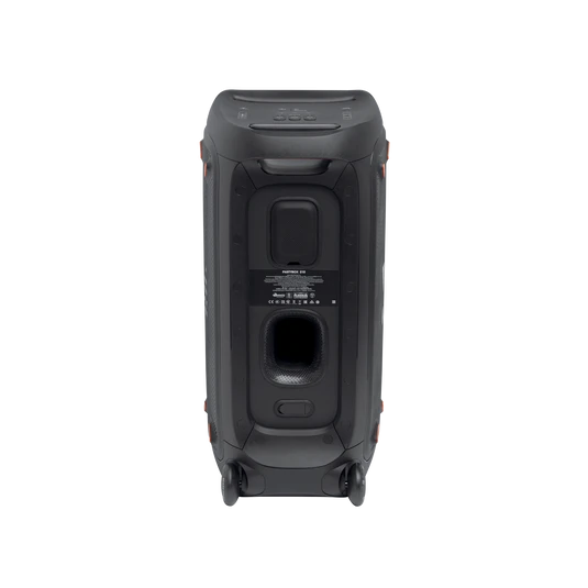 Huge sound, dazzling lights and unbelievable power set this speaker apart from the crowd. The JBL PartyBox 310 packs a full party into a transportable, splashproof sound machine like no other. Turn up your favorite playlists anywhere, from get-togethers at home to dance parties on the beach. Bring big party vibes with 240 watts of JBL Pro Sound and a synced light show that grooves to the beat. Plug in and keep the fun going all night or wheel over to the campfire and take advantage of its impressive 18-hour battery life. Start a party with the JBL PartyBox 310.