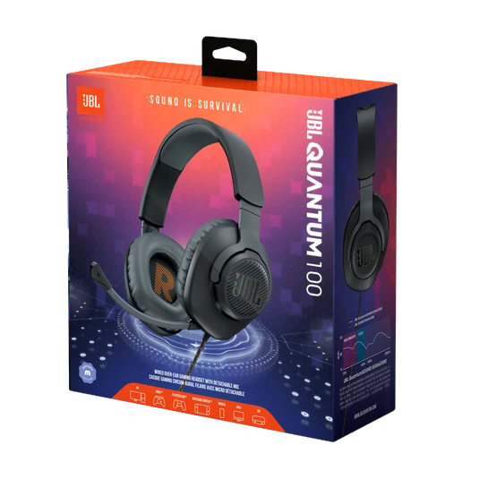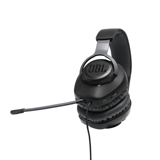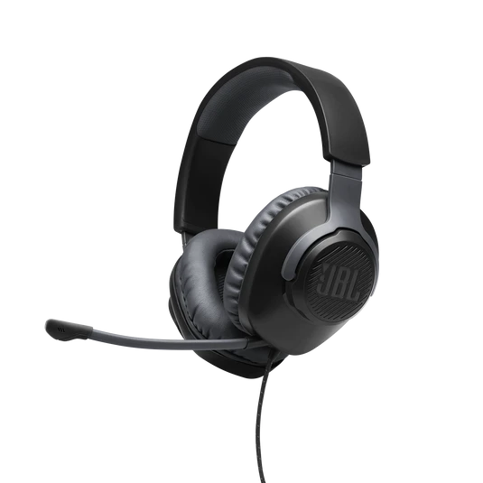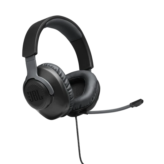 The JBL Quantum 100 is an entry-level wired over-ear gaming headset that offers solid performance for its budget-friendly price point. It is designed for multi-platform use via a 3.5mm audio jack and features a detachable boom microphone.